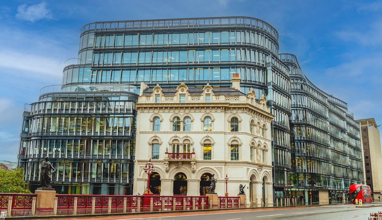 Auch in London hat Doering exzellente Referenzen gesammelt. Zu den spektakulärsten zählt sicher das vom Londoner Büro von Kohn Pedersen Fox Associates (KPF) entworfene und im Jahr 2013 fertiggestellte 60 Holborn Viadukt im heutigen Stadtbezirk Camden, in dem Apple sein UK Hautquartier bezogen hat. Königin Victoria selbst hat 1869 das namensgebende Holborn Viaduct, eine reichverzierte Straßenbrücke, die die City mit dem Westend verbindet, eingeweiht. Im Rahmen eines gewaltigen Revitalisierungsprojektes wurde das im 2. Weltkrieg zerstörte, nordöstliche Pförtnerhaus an der Brücke originalgetreu wiederaufgebaut. Dahinter erhebt sich Sixty London, ein 9-geschossiges Büro- und Einkaufsgebäude, das mit seiner geschwungenen Fassade eine lebendige Antwort auf die umgebende, Viktorianische Architektur gibt.